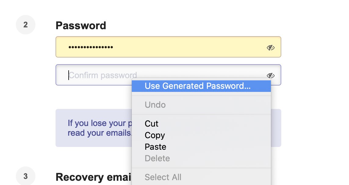Secure password generation is now the number 1 option in the context menu of password fields (in