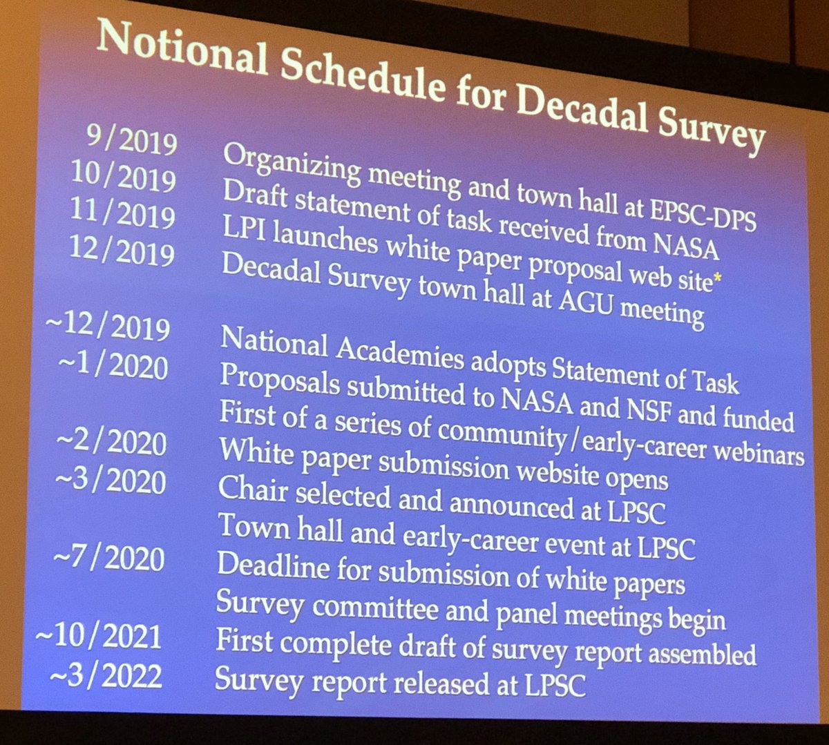 Notional schedule for Planetary Science Decadal Survey III, as presented by NASA SMD and National Academies reps at