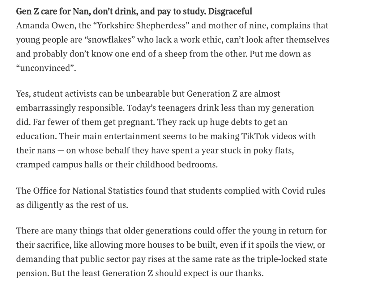 Glad to get this off my chest. Young people have made *enormous* sacrifices this year, because of their public-spirited willingness to protect the lives of older people. (My full Sunday Tmes column is here: https://www.thetimes.co.uk/article/cameron-and-the-coalition-quad-were-chillaxed-about-power-its-cost-us-all-dearly-73rf52qcz …)pic.twitter.com/rtTf7sfXtl