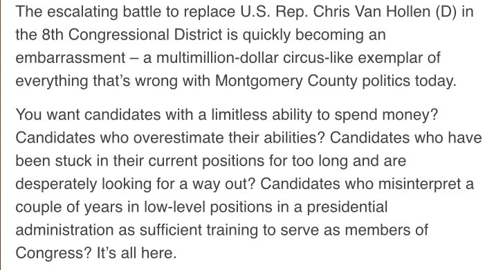 The unedifying race for MD's 8th Congressional District, via @joshkurtznews http://centermaryland.org/index.php?option=com_easyblog&view=entry&id=1475&Itemid=178 …pic.twitter.com/mOvwRPTj0S