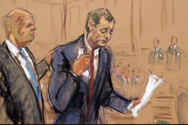 A court artist once again goes where cameras cannot, this time Anthony Weiner guilty plea http://www.nydailynews.com/news/politics/anthony-weiner-pleads-guilty-underage-sexts-faces-prison-time-article-1.3178942 …pic.twitter.com/KXRu5As7jQ