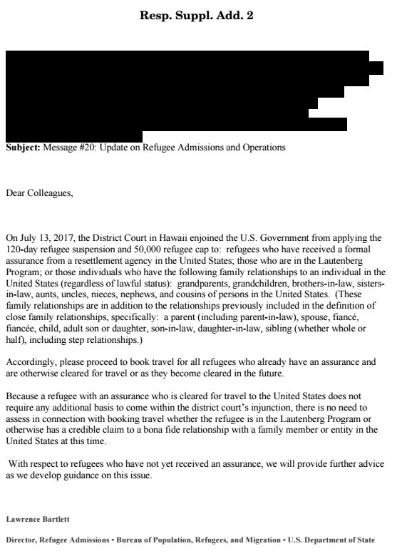 Hawaii brief includes this July 14 State Dept. email sent about refugee program in light of judge's ruling the day beforepic.twitter.com/AvgMc6wBym