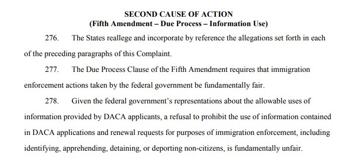 One cause of action (due process) focuses on possibility of DACA recipient information being used for possible deportation actionspic.twitter.com/0ayyrurJj3