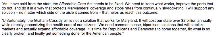 Maryland's GOP governor weighs in, again, on healthcare:https://twitter.com/LarryHogan/status/910194585367990272 …