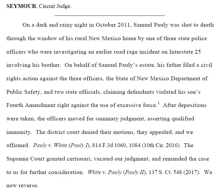 On remand from Supreme Court, 10th Circuit says cops immune from suit for shooting guy through window of his house, killing himpic.twitter.com/6Rdif4v5sd