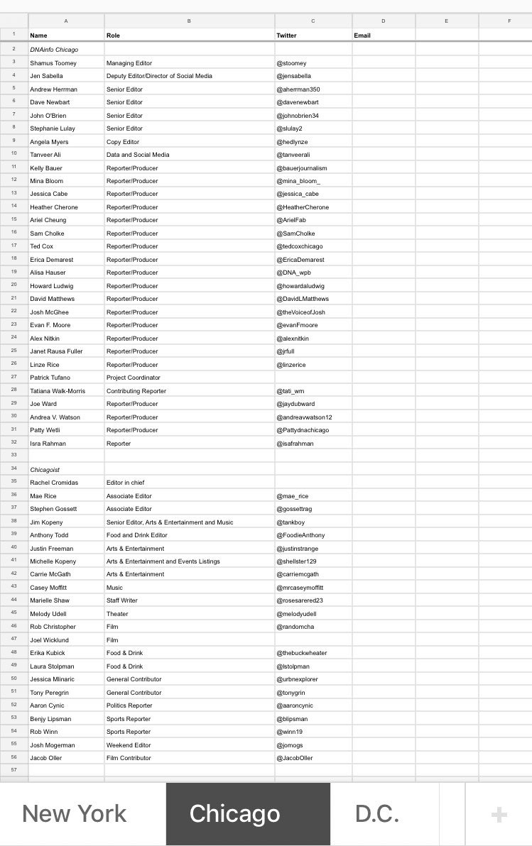 Have an opening? Need a journalist? Here’s a list of all the DNAinfo/ist reporters who now need work. You know they’re good.pic.twitter.com/Cl4j5GLo8n
