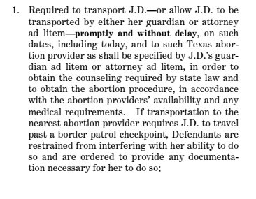 The order says transportation is "to obtain the counseling ... and to obtain the abortion" based on "abortion providers' availability"