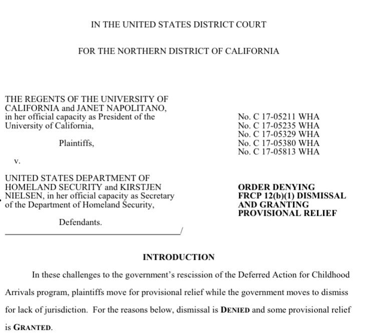 Meat of ruling saying DACA must remain in place on nationwide basis with some exceptions — for example, government doesn’t have to process any completely new applicationspic.twitter.com/BiLcPt5mas