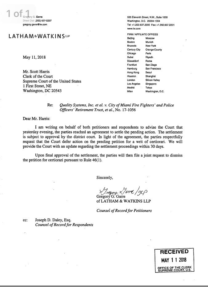 A case the Supreme Court might have been thinking of taking up as soon as Monday is settling (h/t @AlisonFrankel)pic.twitter.com/PhACwkjRFR