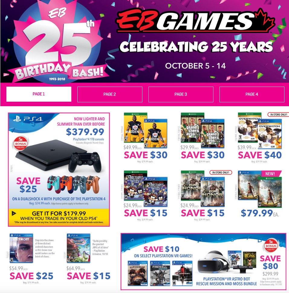 EBGames sales usually start at exactly midnight EST the day in question. So, should be online (roughly, because their site updates slowly) around 12:00am EST Oct 5
