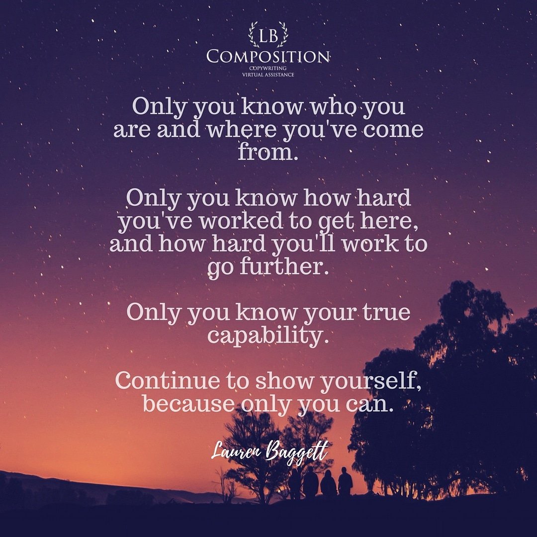You are the ONLY one who knows YOUR true capabilities. Once you start believing in yourself, you can accomplish anything. . . .