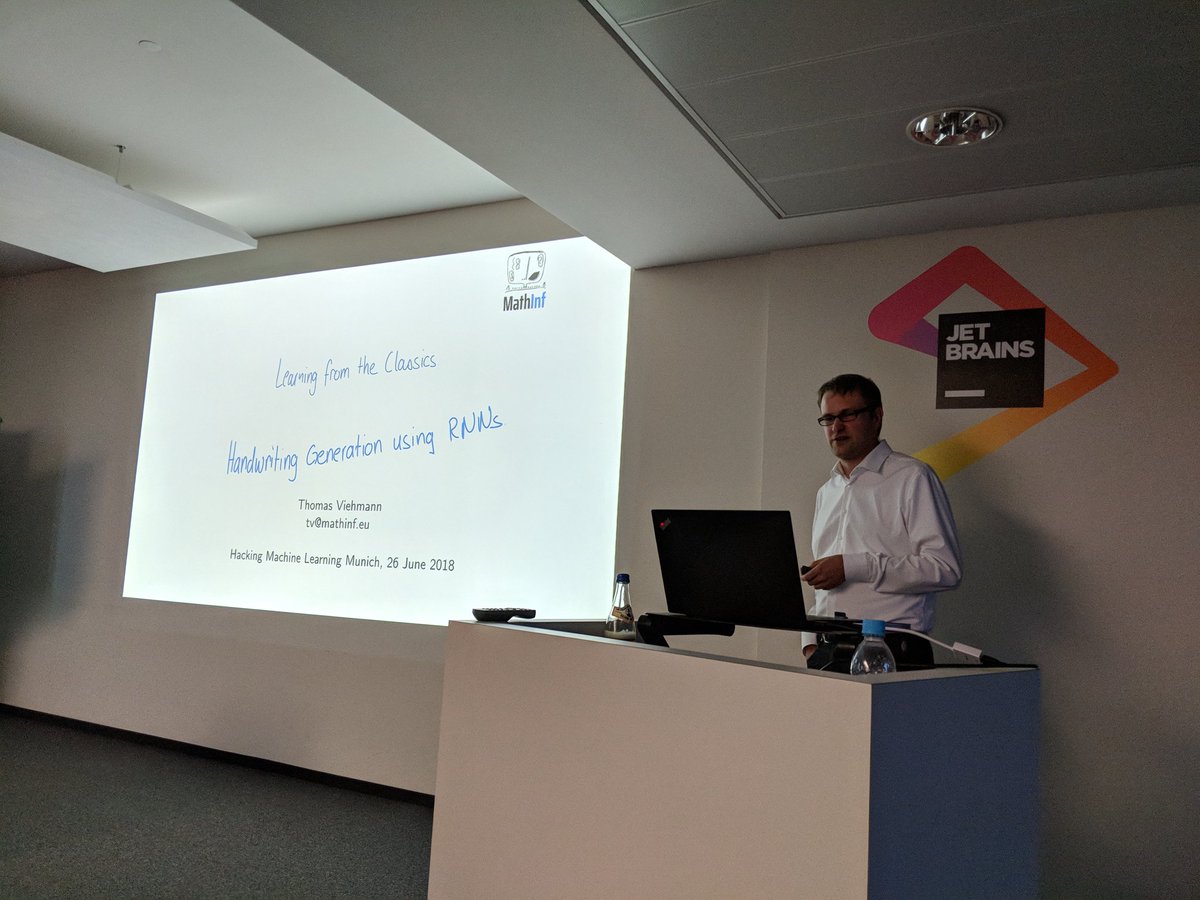Super exciting speakers today. Last but not least, Thomas Viehmann from MathInf - Learning from the classics: handwriting generation using RNNs - great introduction! And we finally have a nice discussion with the audience!pic.twitter.com/npcJOSXFMe