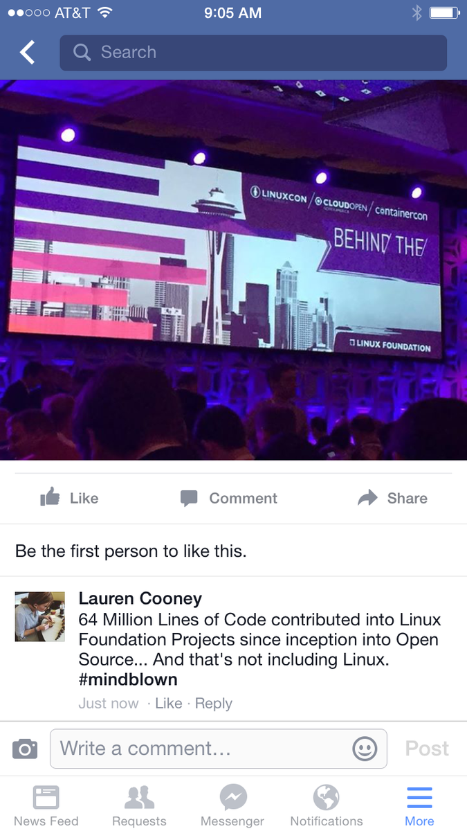 This. 64M lines of code. #bang #LinuxCon cc/@linuxfoundationpic.twitter.com/8eT867p8Nk