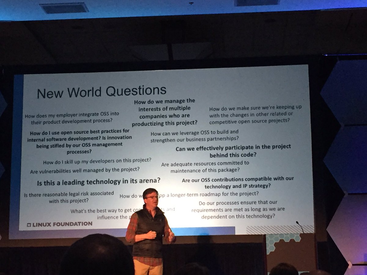 'New World' #opensource questions via @jzemlin cc/@linuxfoundation #lfcollabpic.twitter.com/r5eLvaewIb