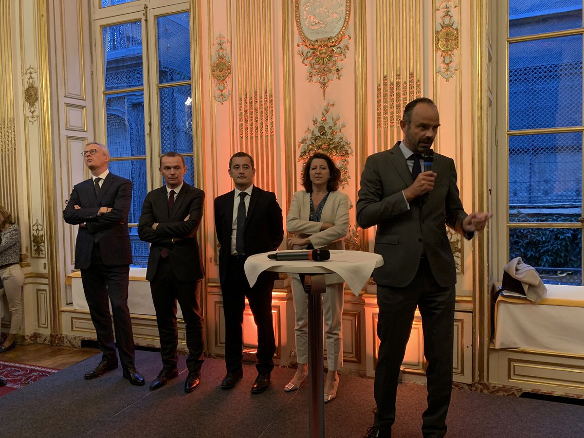 Réunion de travail à Matignon en présence des ministres en charge du budget et du budget de la Sécurité Sociale.