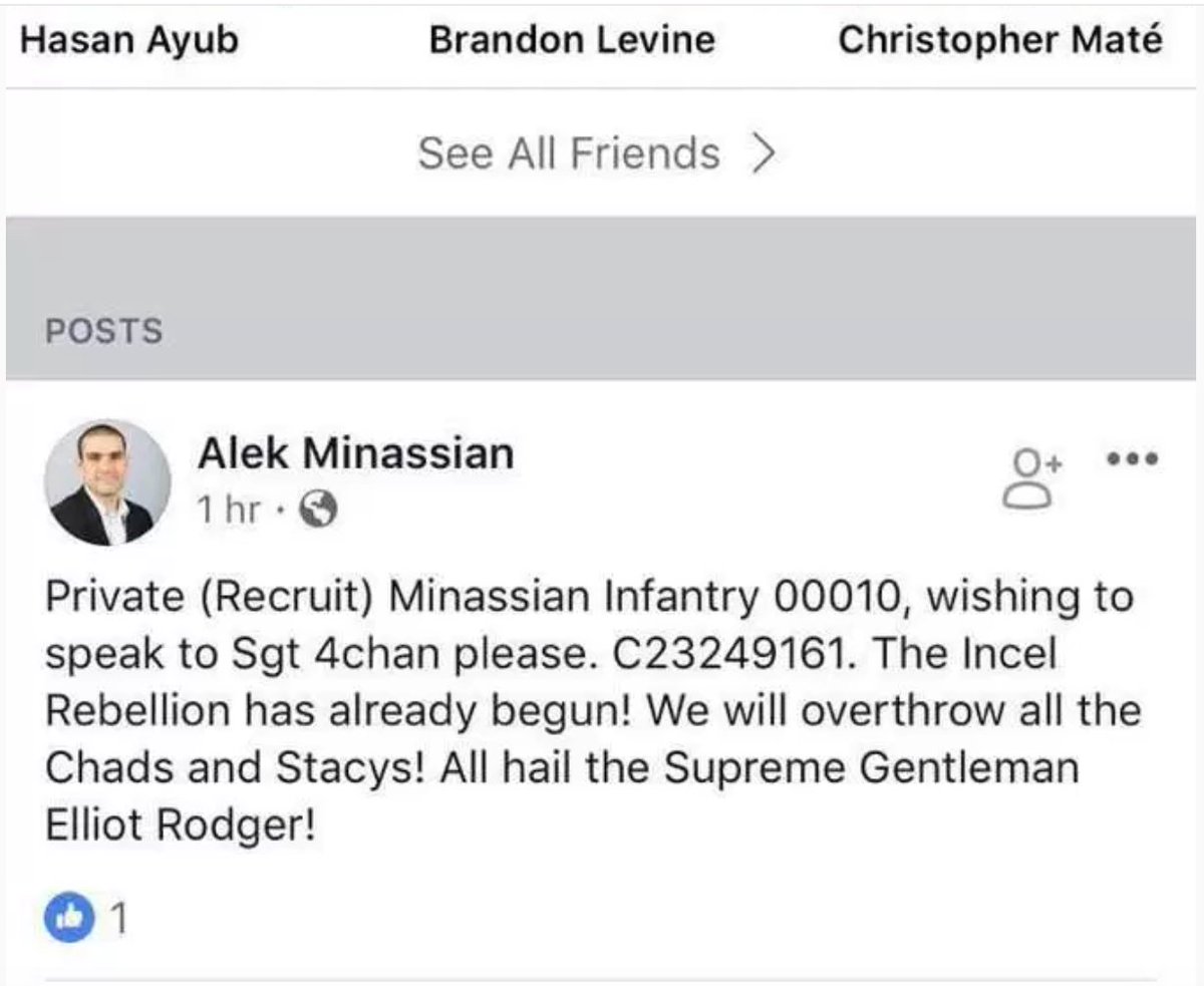 Incel movement has links to Richard Spencer? Getting closer and closer to Handmaid's Tale. Scary.https://twitter.com/PepperGii/status/988813227697033216 …