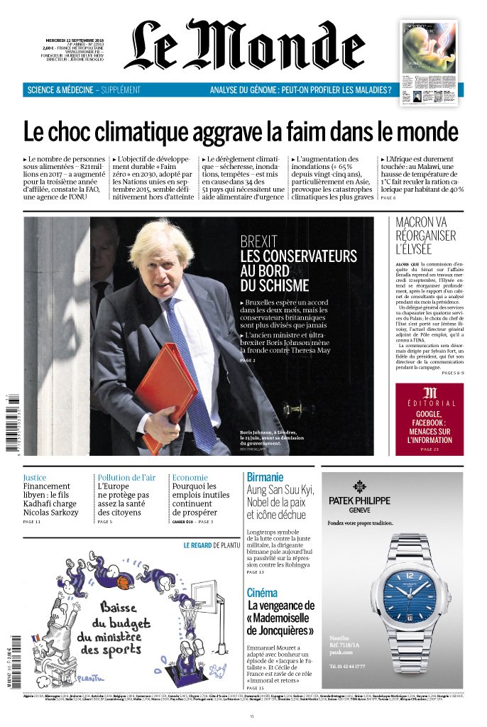 #ALaUne Le choc climatique aggrave la faim dans le monde // Brexit : les conservateurs au bord du schisme //Editorial : Google, Facebook : Menaces sur l'informationpic.twitter.com/9XJKoQfSBw