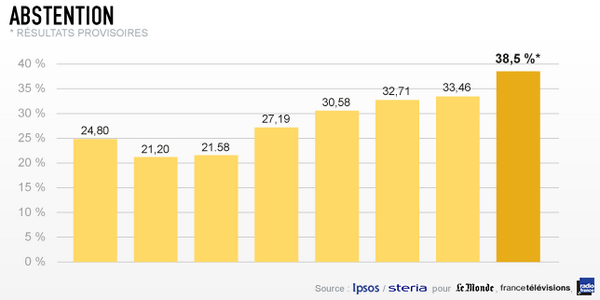 @lemondefr:#Municipales2014 : vers un taux d'abstention de 38,5 %"Thanks. Twitter will use this to make your timeline better. UndoUndo