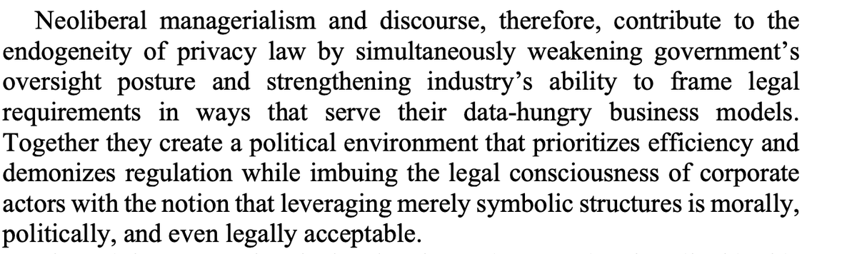 @ariezrawaldman's article on the warping of privacy law into empty box-checking enough https://papers.ssrn.com/sol3/papers.cfm?abstract_id=3499913&download=yes …pic.twitter.com/G6Gf7ABJPG