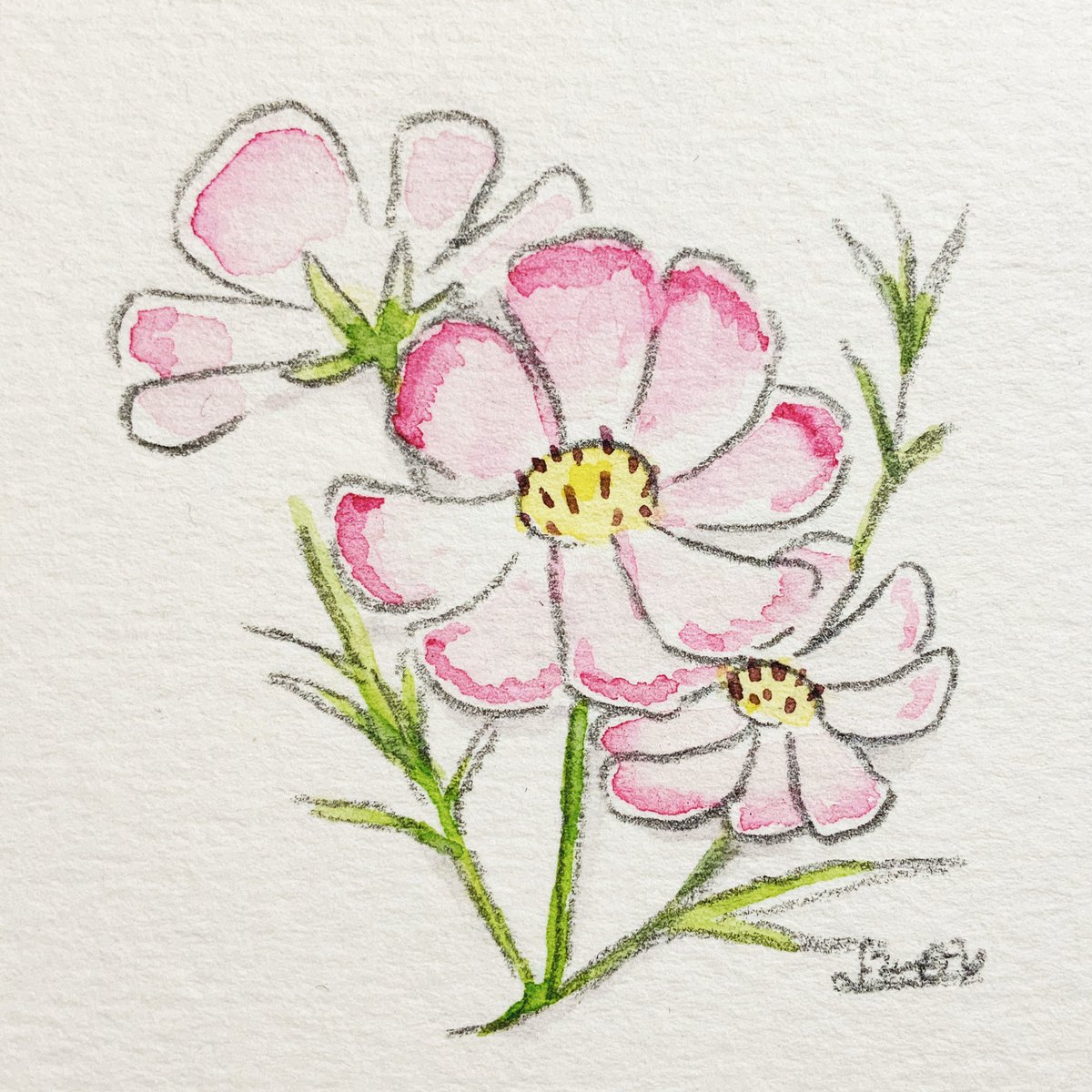 母さんが好きなピンクのコスモス #水彩 #固形水彩 #透明水彩 #コスモスpic.twitter.com/GxqDuPvuyD