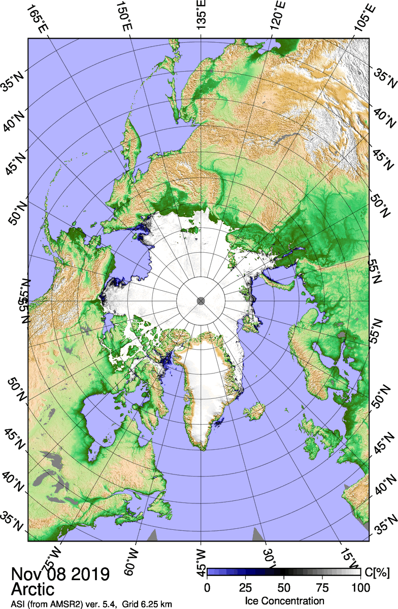Yes, comparing 10.11.2015 vs 8.11.2019 it looks like someone had a bite of a big chunck of sea ice in the Chuckchi Sea. We saw a similar extreme decline in the Russian sector with sea ice thickness almost half what we expected as part of