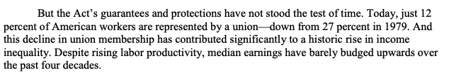 The House passed the PRO Act -- which would give more workers the right to organize -- in March, but the Senate has yet to take it up:https://www.marketwatch.com/story/pro-act-called-most-important-labor-legislation-in-several-generations-passes-house-11615342171 …