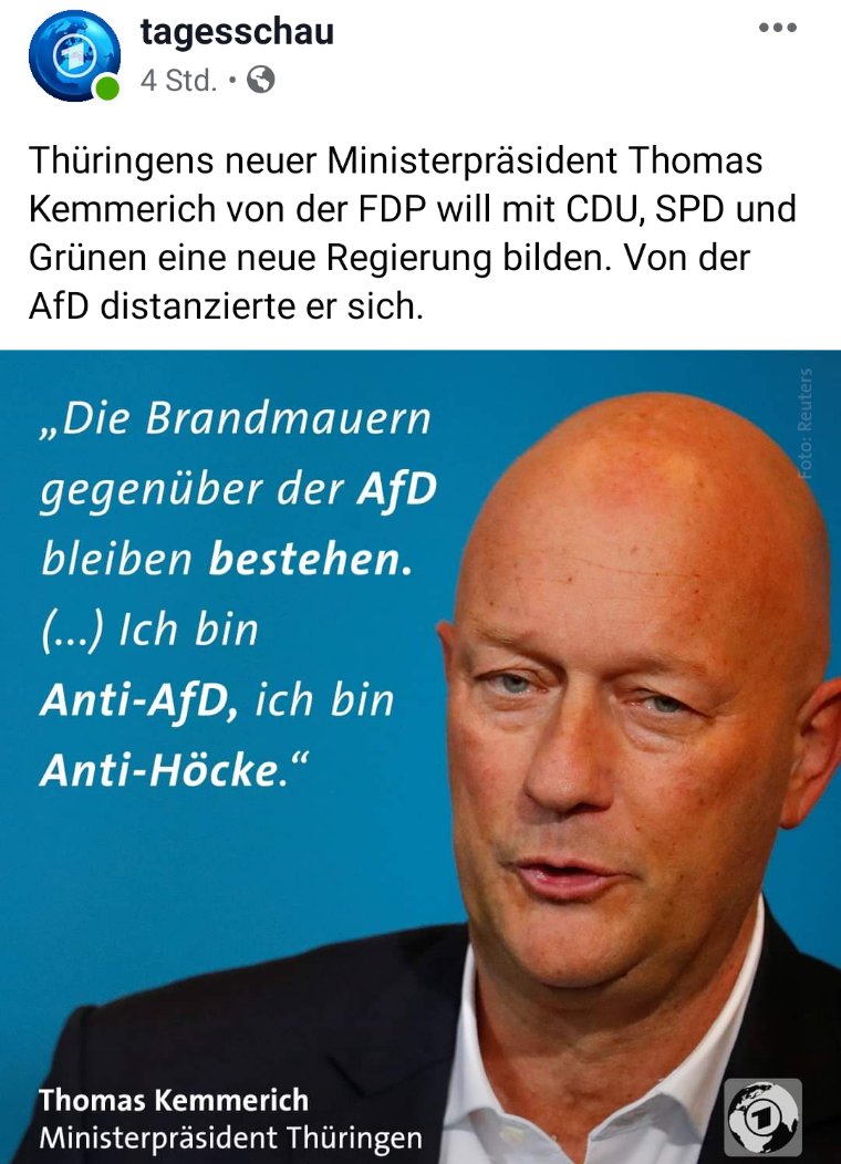 #Thueringen erleben :-( Für mich ist das unfassbar, wie man gemeinsame Sachen mit Faschisten machen, in so einer Situation, wo unsere Demokratie von rechts bedroht ist. Antifaschismus ist Tagesaufgabe