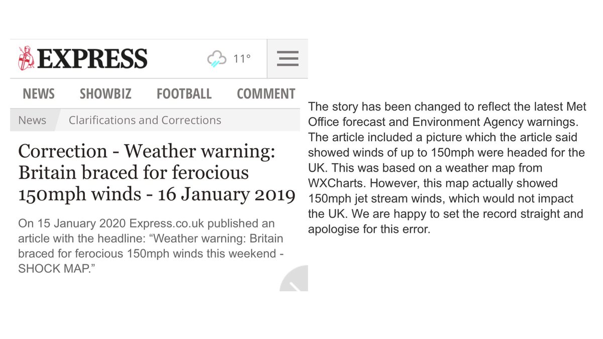 Following my early thread of tweets, the @Daily_Express has issued a correction to the weather article - something that I don’t recall ever happening before. This is fine, but how about it addressing the ongoing quality and misleading tone of its weather articles?pic.twitter.com/e7V5ViqPRQ