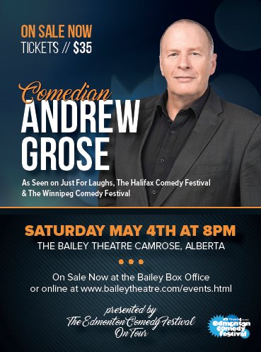 Tickets are now on sale for my show at The Bailey Theatre in Camrose. I would love to see you there. Tell friends. Bring friends. Buy them at the