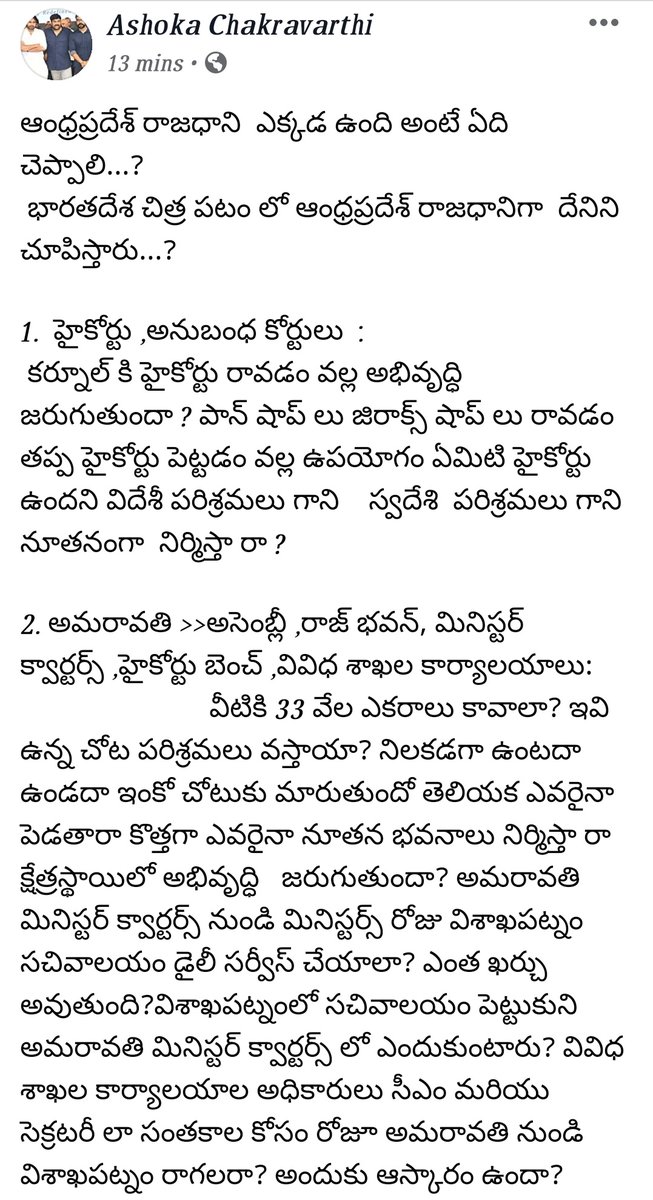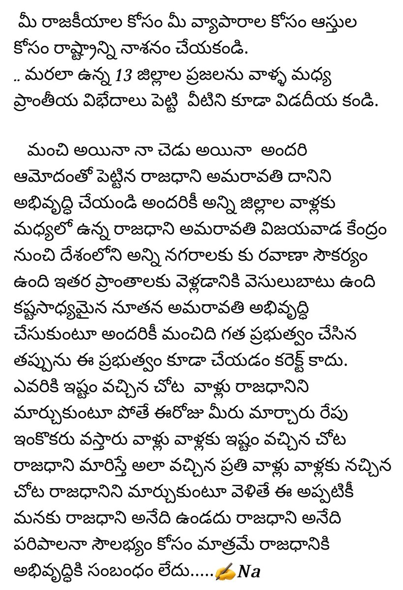 There should be only One Capital. It should work as the growth engine for the State & help bring in the required investments by competing with other capitals in the Country. (7/n)pic.twitter.com/u9qLXtcJvT