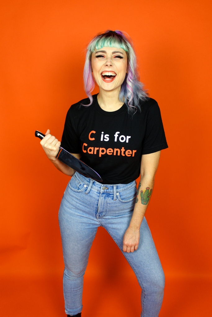 C is for Carpenter @SuperYakiShop x @lilcinephile also available in kids sizes because of course they are. On sale this Friday 10/8 at 12PM CT.