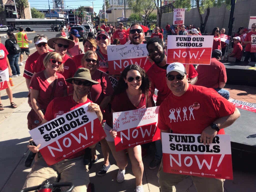 #FundOurSchoolsNow rally this morning. CCSD needs $120 million more annually to reduce class sizes, buy supplies for schools and provide salaries that will attract teachers so 20,000 students don’t have a substitute teacher.#CCEAstrong#NVleghttps://twitter.com/fox5vegas/status/1122160965347205120 …