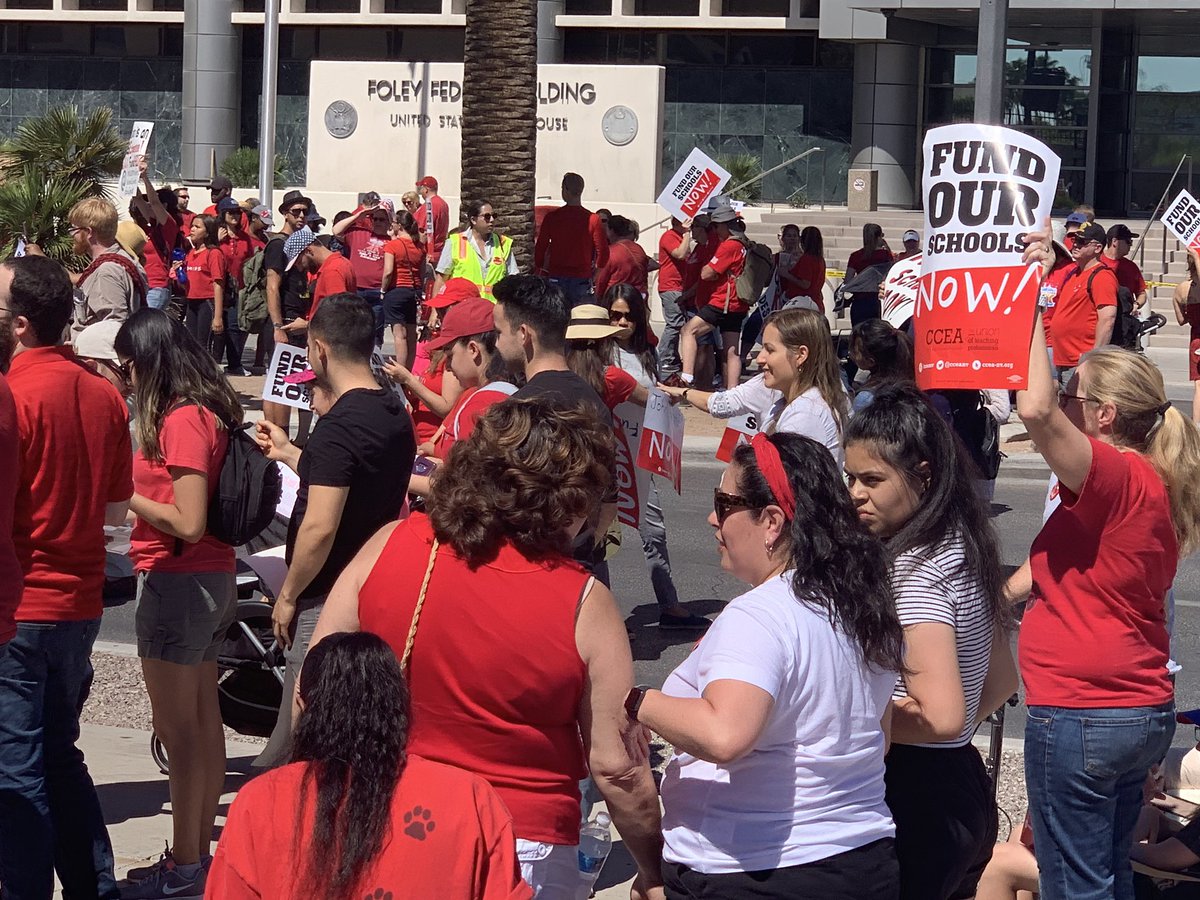 Clark County educators, parents, students and the community rally in front of the Federal Courthouse to try and secure additional funding for schools. They want more money to reduce class sizes, get resources for students and increase salaries