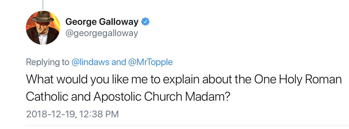 Had no to idea, guess not paying attn, I suggested taxing the he vast wealth of the Catholic Church and got this, I kind of think that Galloway has a bad dose of Catholicismpic.twitter.com/Naql1kF4rb