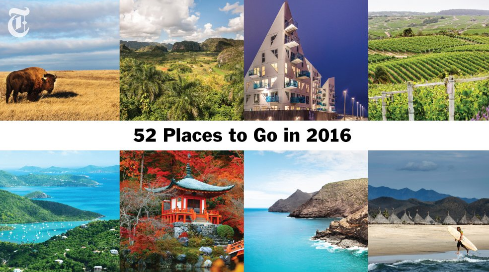 @nytimestravel's list of 52 Places to Go in 2016 is here. http://nyti.ms/1PgOFlw pic.twitter.com/jgkGxZWco8