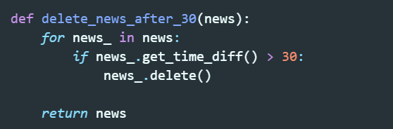 Day 34: Added a function that deletes news older than 30 hours