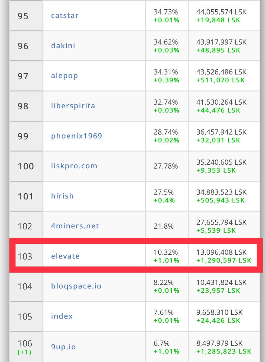 Rank103 elevate 怒涛の追い上げですね。 Mobile Hub for Lisk アプリ使用してる人は