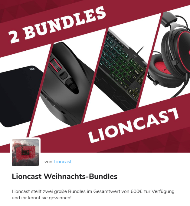 @LioncastDE hat 3 Bundles voller Hardware zur Verfügung gestellt im Wert von 900€! Zum Gewinnspiel geht's hier entlang: https://gheed.com/giveaways/G9ew- Viel Glück!pic.twitter.com/xUS9W3xLnq