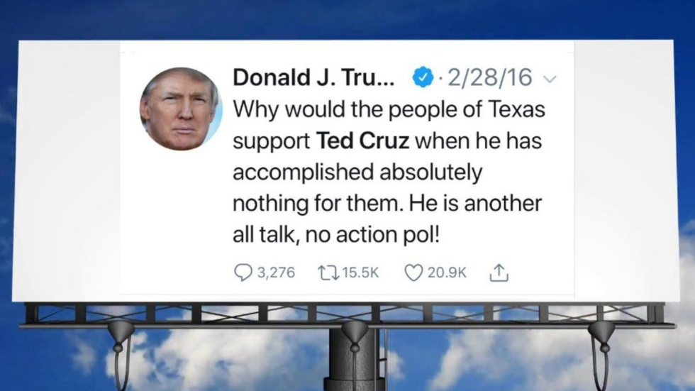David Hogg helps raise thousands to place billboard of Trump's anti-Cruz tweet in Texas http://hill.cm/o5me0io pic.twitter.com/EXvET68KCJ