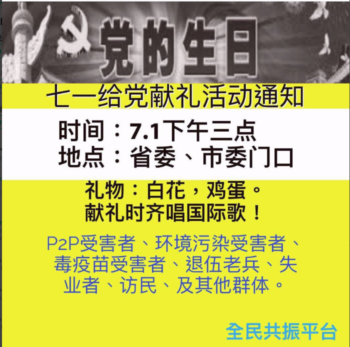 【7.1 全民共振!】呼吁--支持香港和台湾的反抗不合作抗议运动!! 请海外的朋友向国内转发。毛贼当年说过,敌驻我扰,敌疲我打。我们现在以其人之道还治其人之身。只要大家把信息传播足够广,中共就不得不全面布防。国内的朋友请不要在公开平台转发。已被喝茶的朋友请暂时不要参与活动。pic.twitter.com/4wCGUCAs6G