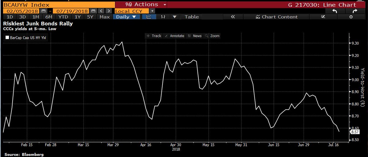 The riskiest U.S. junk bonds keep on rallying, with yields on the notes falling to a 5-month low.pic.twitter.com/v5a7pFY3ps
