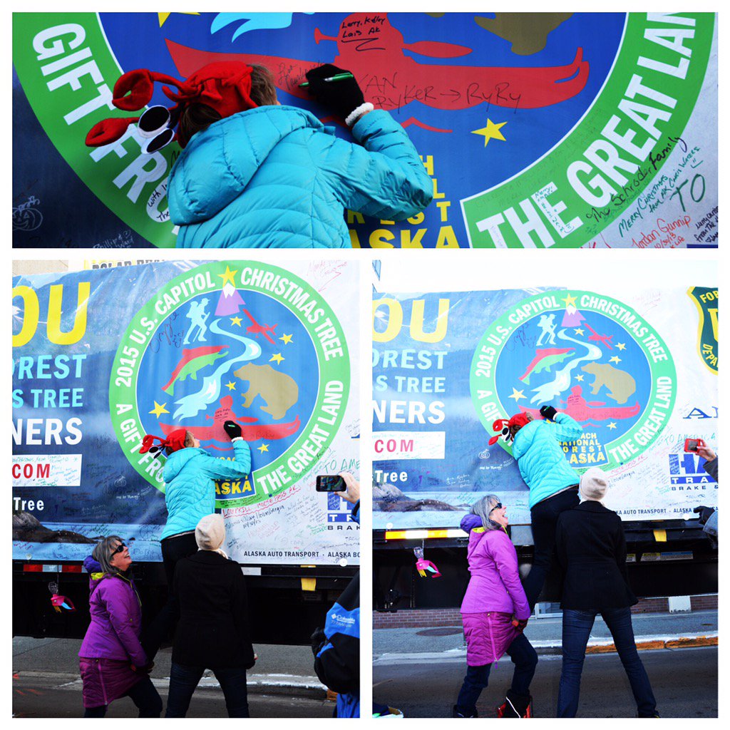 Getting a lift to sign the @USCapitolTree banner before sending off the tree from @ChugachForestAK to DC.pic.twitter.com/dNyqUoUde9