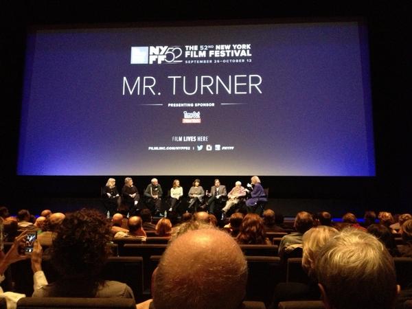Mike Leigh with the cast of his "Mr. Turner" at the #nyff. The color was amazing.pic.twitter.com/LLGMsk7VLL