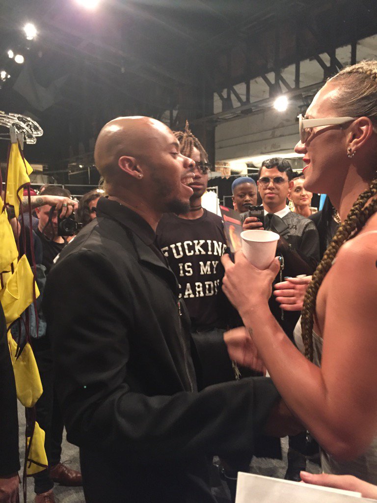 Hood by Air's Shayne Oliver greets guests backstage after his "Wench" show #nyfwpic.twitter.com/LbX4pFGinH