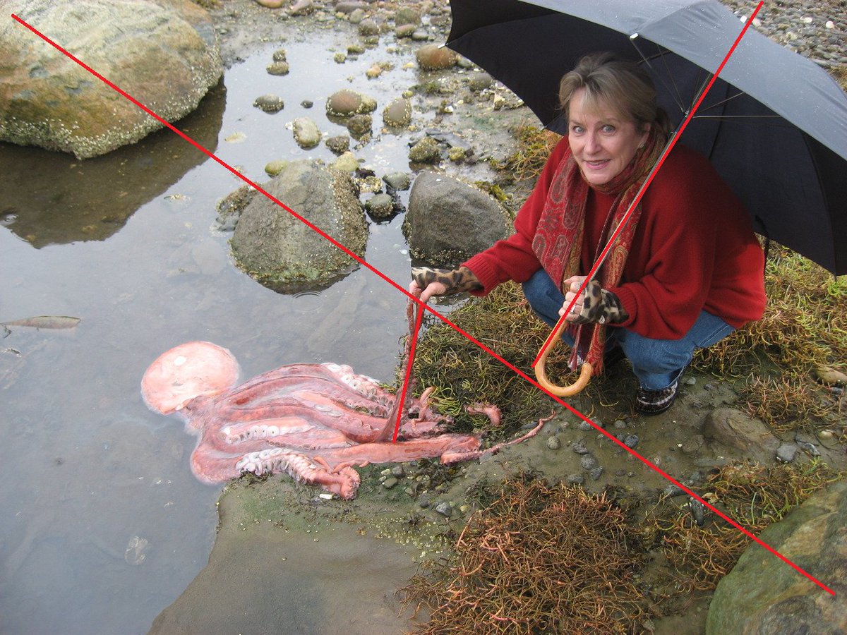 @literalbanana @fire__exit woman simultaneously attempting to deny viscous nature by shielding self w/clothes, umbrella, also touching oct