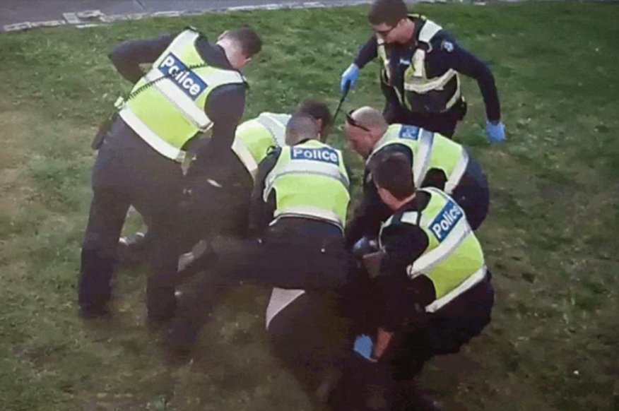 Shocking CCTV captures the moment six police hold down a disabled pensioner and beat him with a baton as he lies helpless.