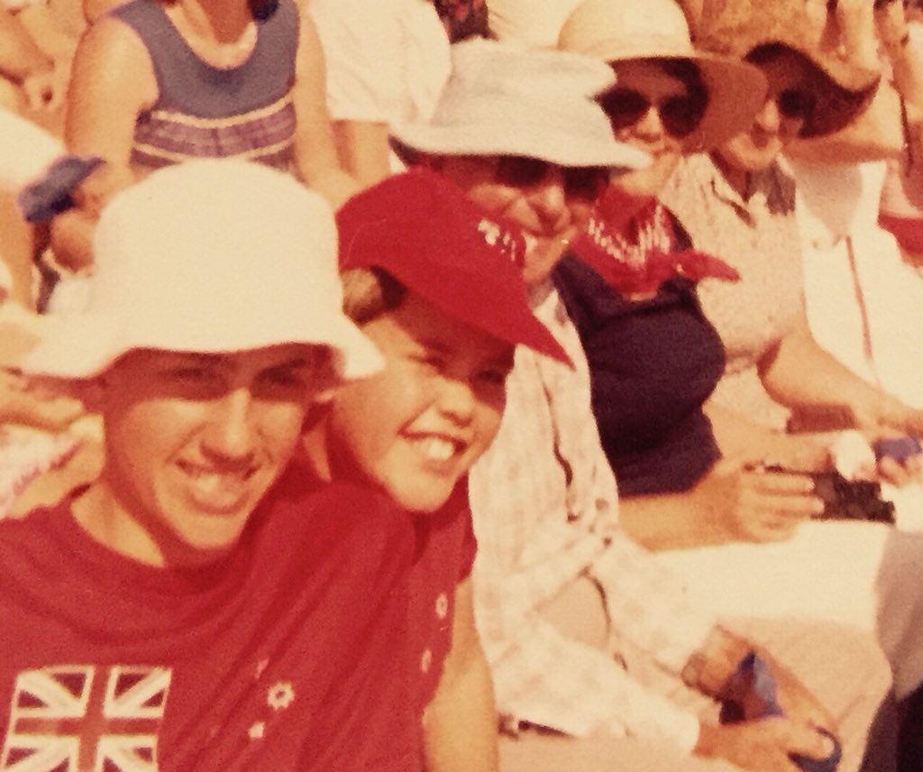 with my brother @MiltonDickMP, my late dad & my mum (my sister Susan is taking the photo) at the opening ceremony of the 1982#CommonwealthGames & doing the same 36 years later with my own family at#GC2018
