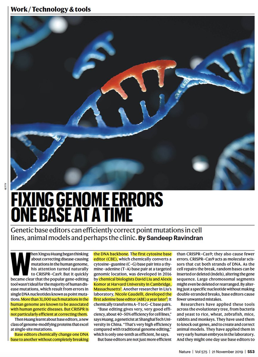 Got mutation? ‘Base editors’ fix genomes one nucleotide at a timehttps://www.nature.com/articles/d41586-019-03536-x …