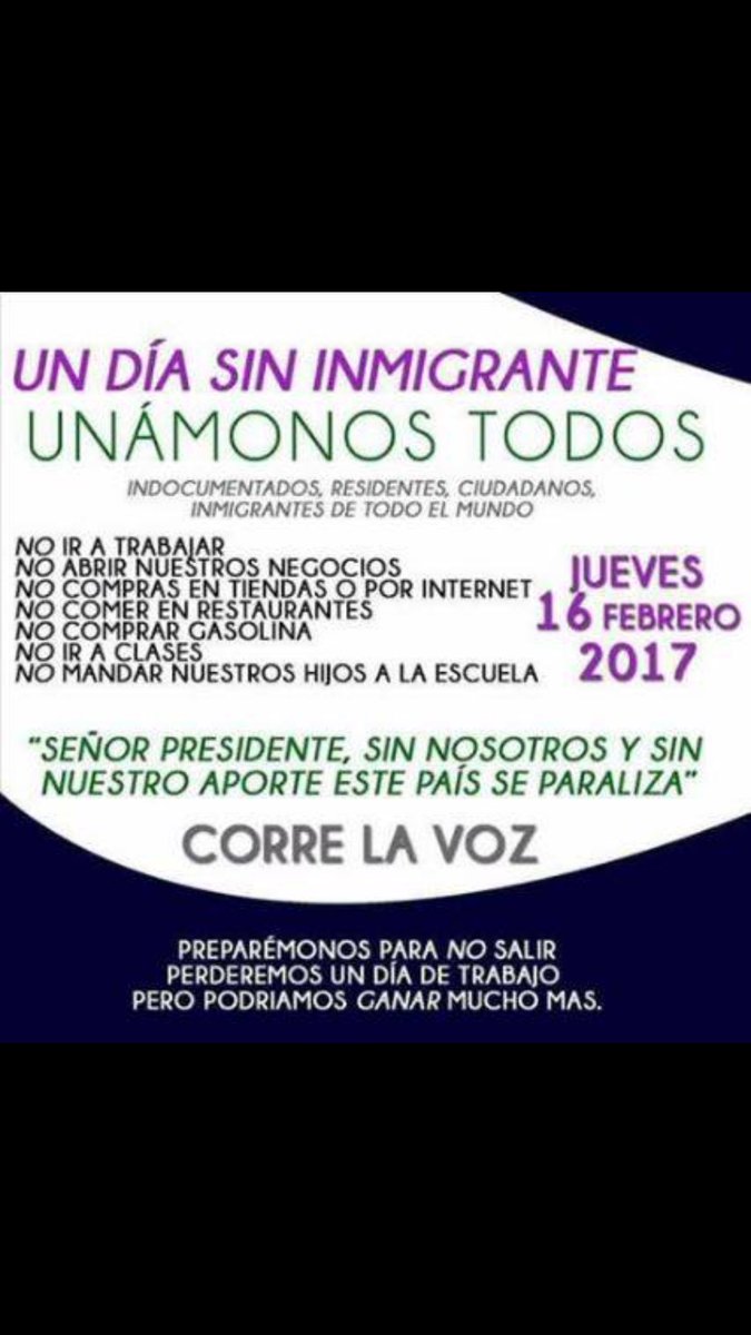 #solidarity with nationwide A day without Immigrants, Feb 16 we will closepic.twitter.com/PwzbKTpdNK