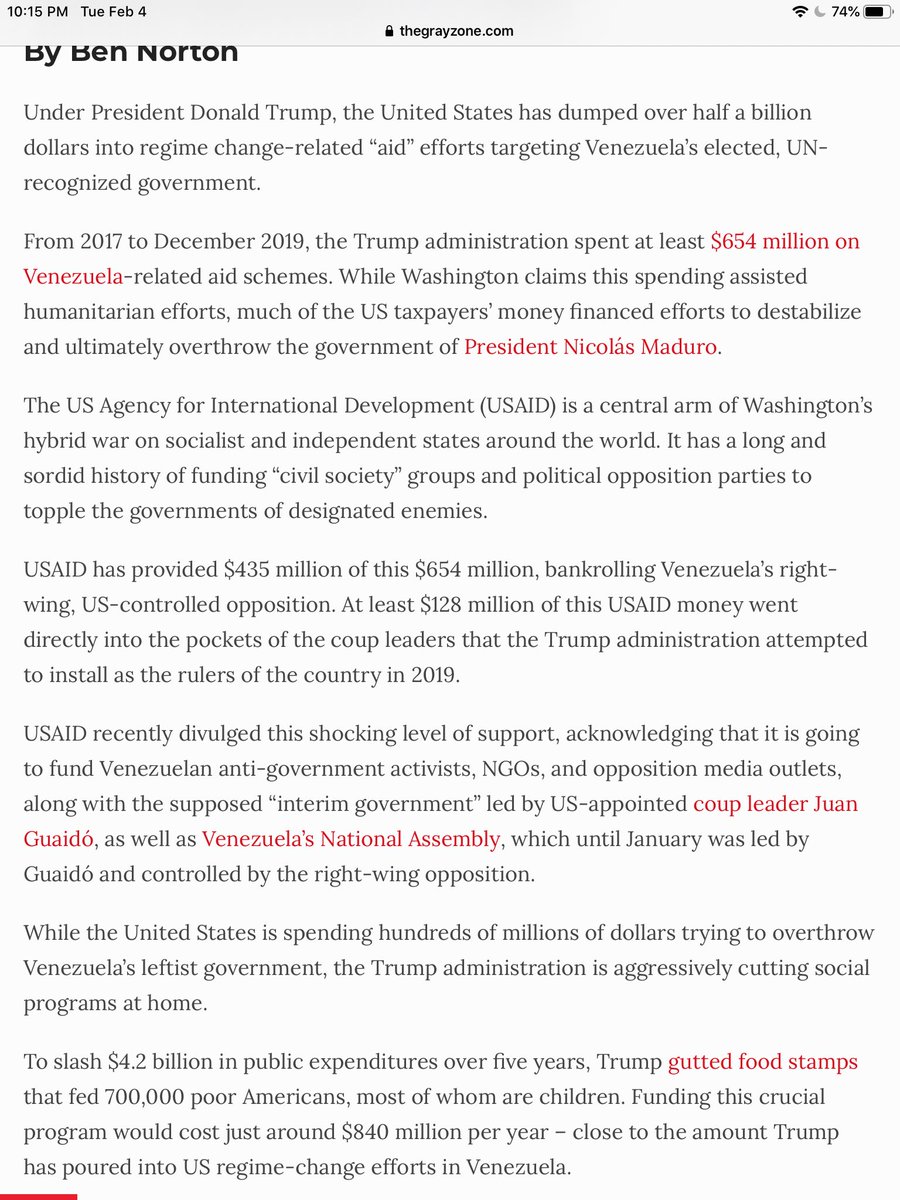 I would rather our social safety net be saved here at home for all Americans in need, than being cut and used to fund right wing coups and warmongers.